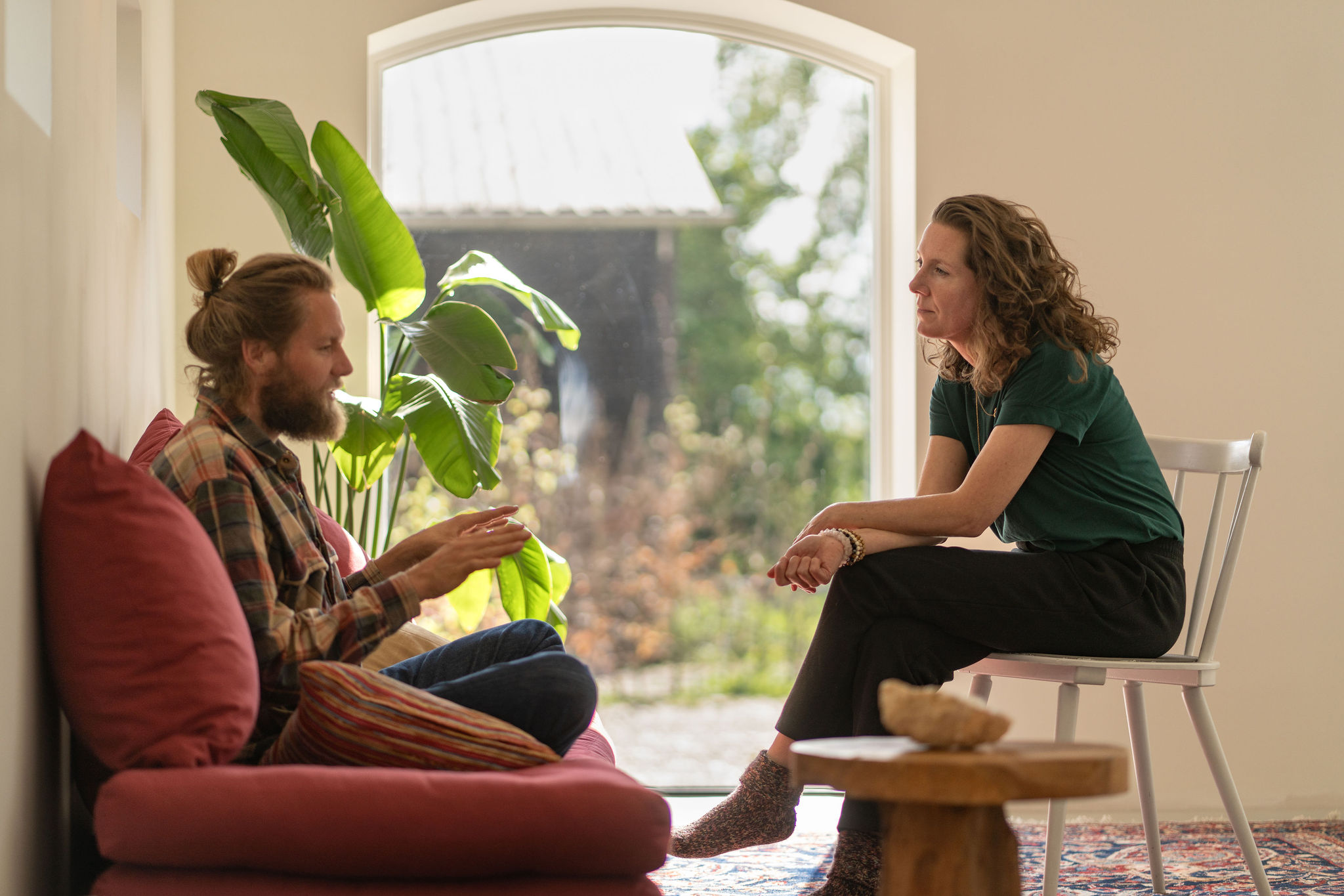 Je kijkt uit op de tuin, waar ook een vuurplaats is en plek om te eten. De Deel willen we graag delen! Het is dan ook mogelijk om deze te reserveren voor ander bezield groepswerk. De bijzondere lichtinval door de grote pui en kleine rondboogramen maakt het een heerlijke plek. De Deel wordt door ons energetisch helder gehouden en draagt daardoor bij aan transformerende processen, wat voelbaar is.
